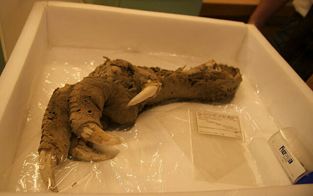 Nearly three decades ago, a team of archaeologists were carrying out an expedition inside a large cave system on Mount Owen in New Zealand when they stumbled across a frightening and unusual object. Preserved Megalapteryx (moa) foot, Natural History Museum. With little visibility in the dark cave, they wondered whether their eyes were deceiving them, as they could not fathom what lay before