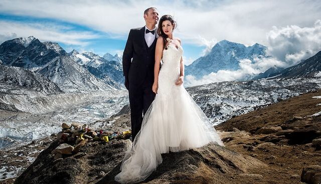It’s been said that love can move mountains, but one California couple has proven that it can also climb them. Ashley Schmeider and James Sisson felt that a run-of-the-mill wedding ceremony wasn’t right for them – so they decided to get married on Mount Everest instead. As you can probably guess, their wedding photos are monumentally epic. 32-year-old Ashley and 35-year-old James spent a