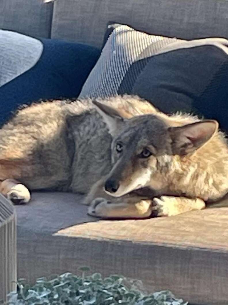 Though the homeowner may have thought at first that the sleeping animal was a neighborhood dog, a closer look revealed that he was, in fact, a wild coyote.