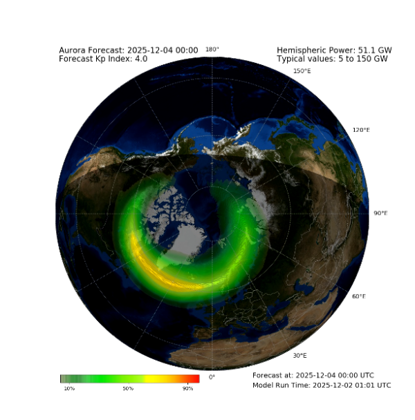Northern Hemisphere aurora forecast courtesy of the U.K. Met Office