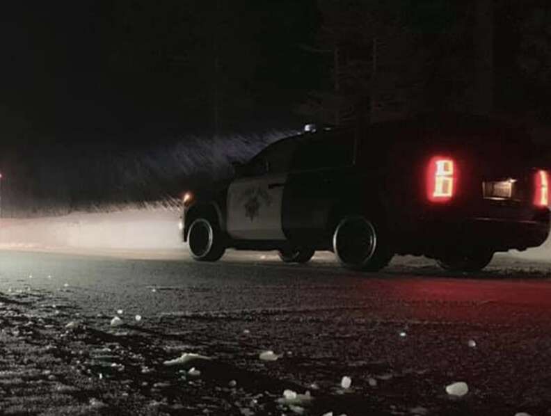 This week, Officer Barnes of the California Highway Patrol was working the graveyard in South Lake Tahoe when his headlights illuminated something on a dark, snow-sprinkled stretch of road.
