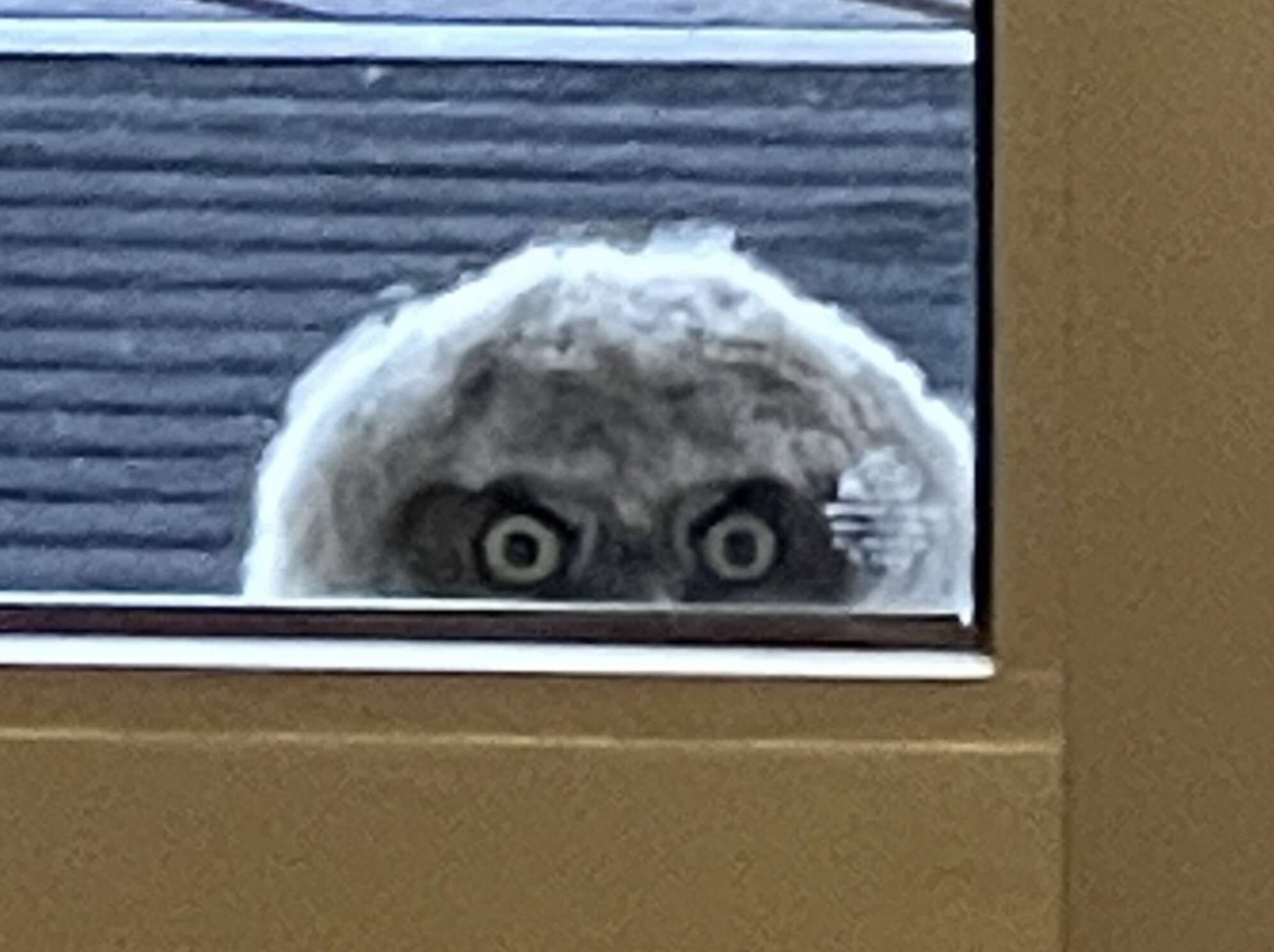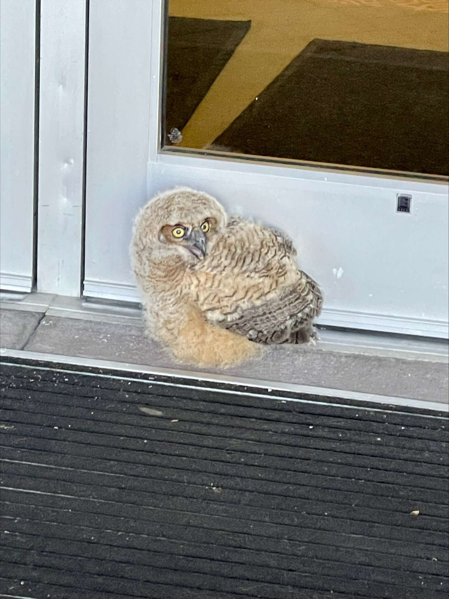 Unable to get back up to the nest on his own, the owl had apparently come to ask for assistance.